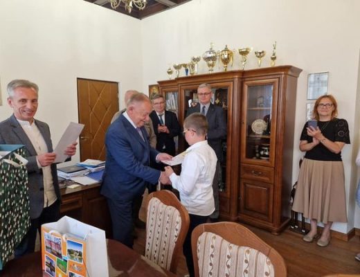 Dzisiaj Tymon w obecności Pani Dyrektor i mamy odebrał nagrodę z rąk Pana Jana Pączka Starosty Przemyskiego za uzyskanie tytułu Wicemistrza Matematyki. Tymon, jeszcze raz gratulujemy!